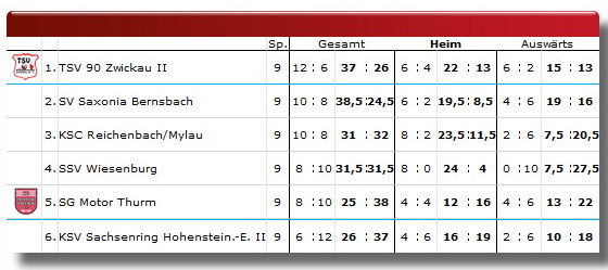 2.608 | Bernsbach | 6 | 2 | - | 0 | 1 | Wiesenburg | 2.460 |